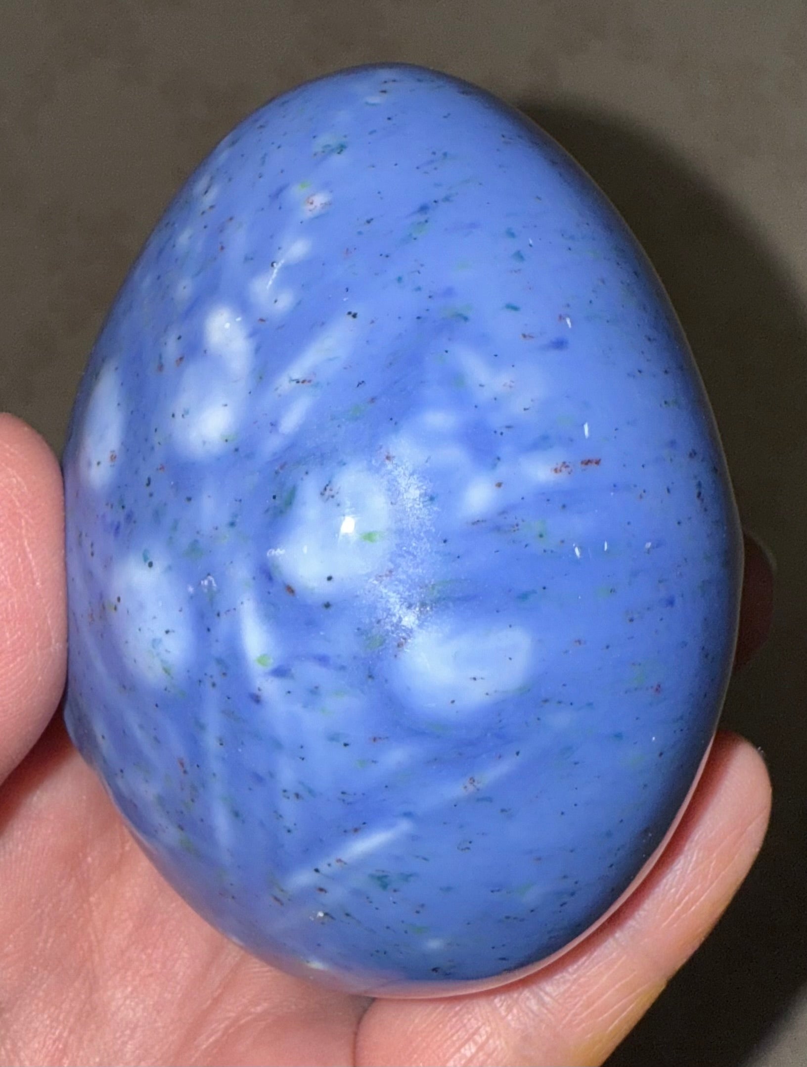 Blue Speckled Ceramic Decorative Egg – Signed “Louise” – 3.25” x 2.5”