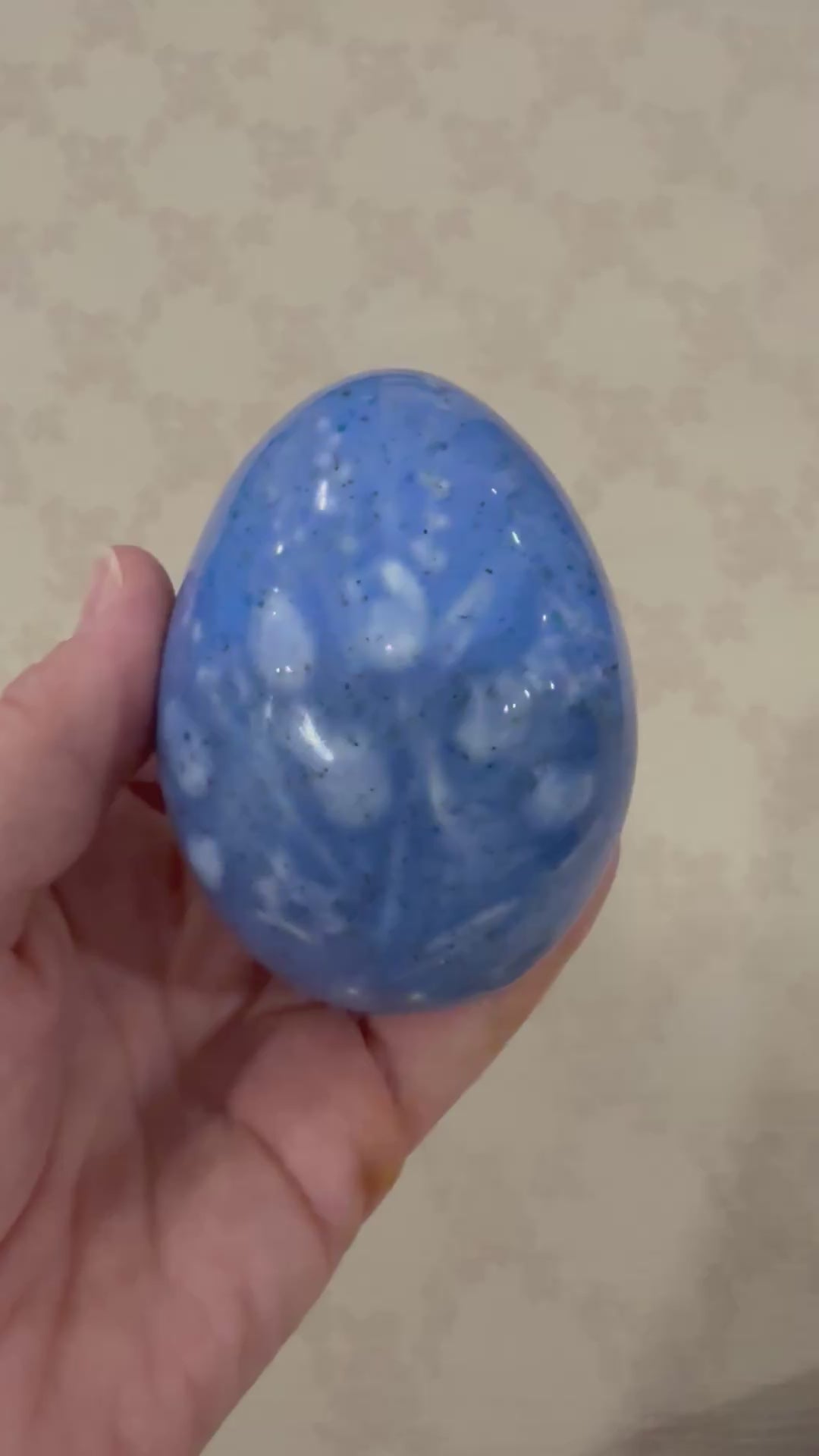 This egg has a soothing, almost stone-like appearance with the warmth and uniqueness of handmade pottery.