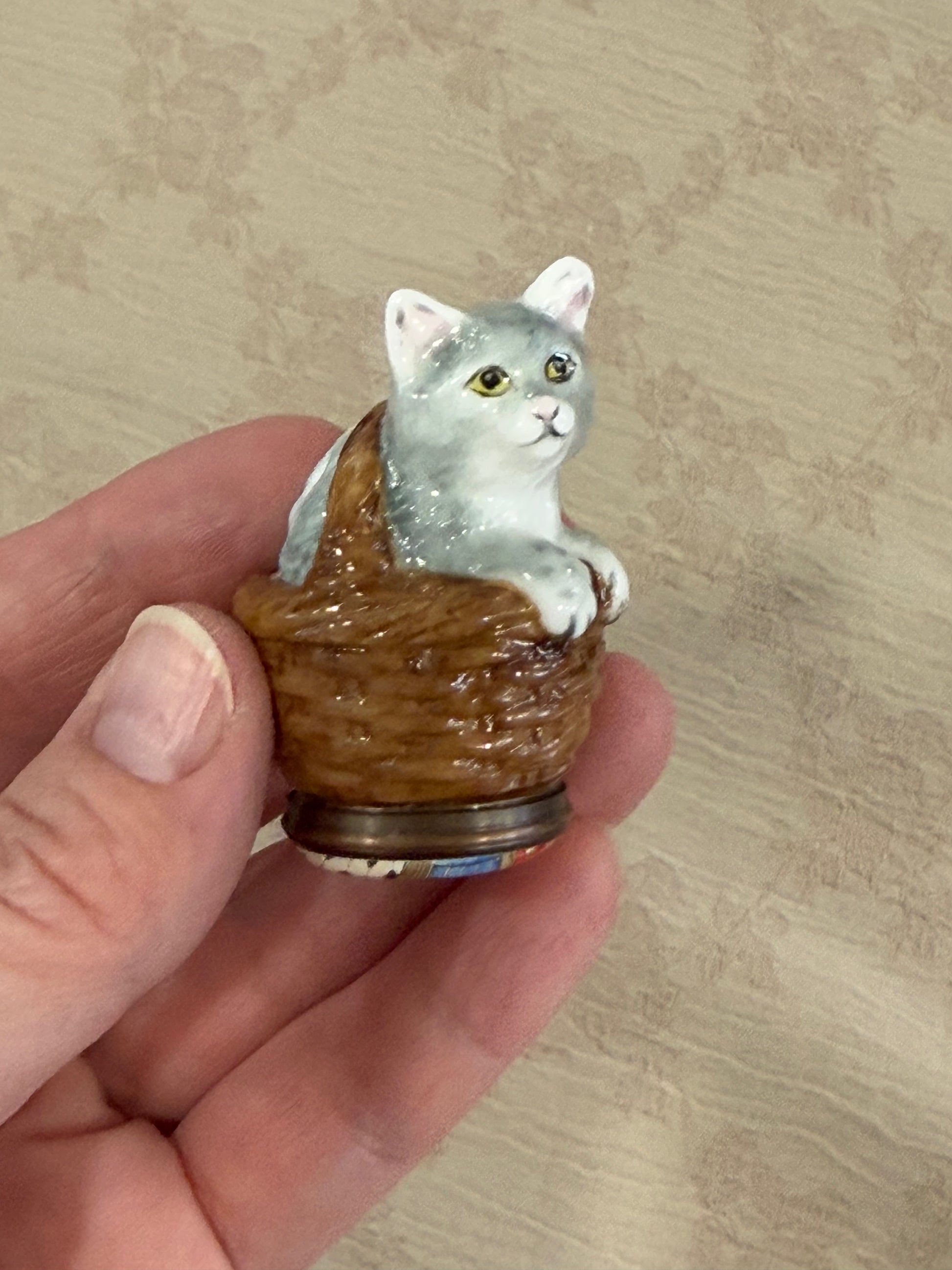 Halcyon Days Enamel Trinket Box – Gray Kitten Collectible Keepsake